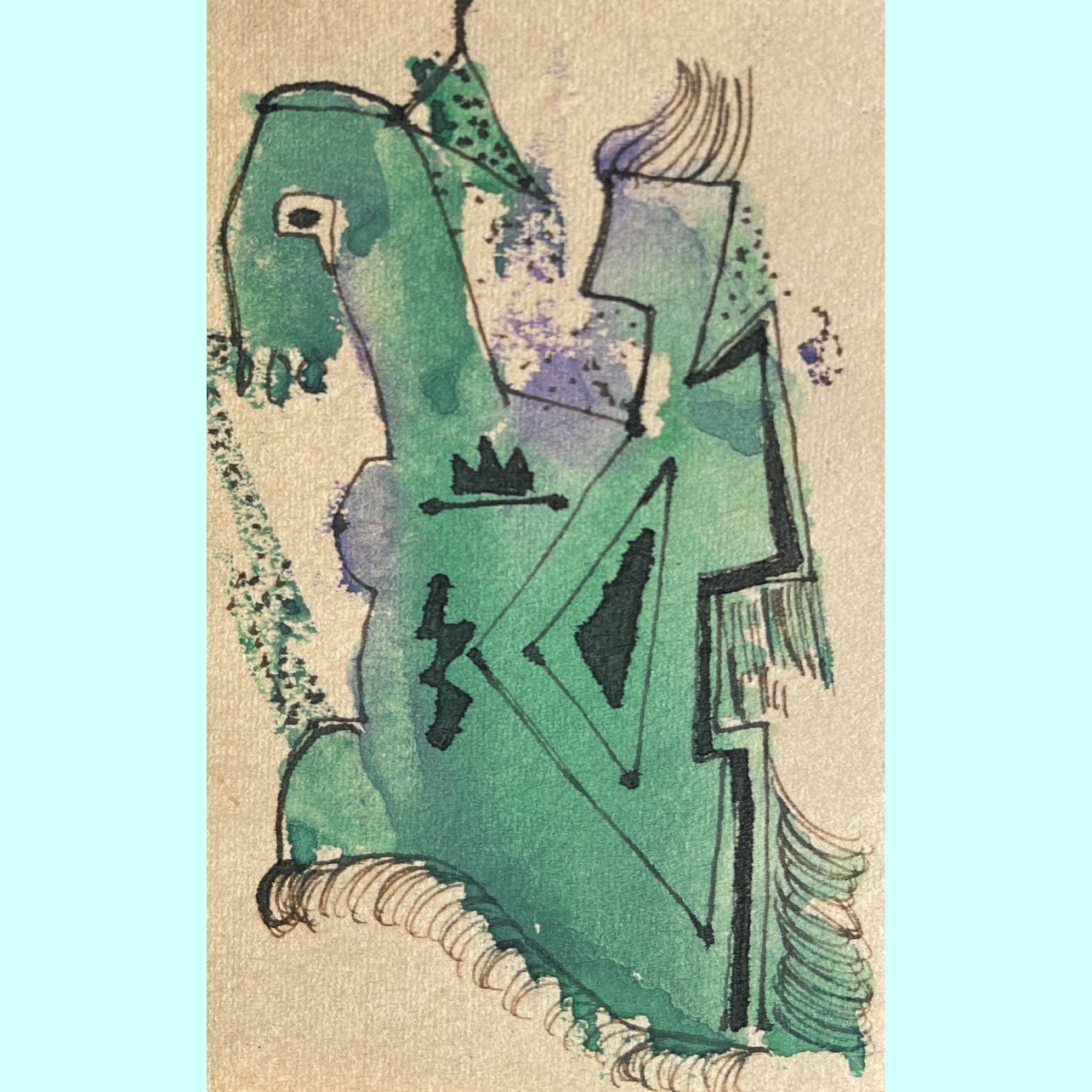 “Juanita Donnell Lantz Leighton Goodwin grew up in Texas and eastern New Mexico. At one time she was married to Paul Lantz and assisted him with the paintings he created in the La Fonda Hotel in Santa Fe. She later married Fred Leighton, an importer, and Walter Goodwin of Santa Fe and continued to paint all her life. She worked on twenty-seven ceiling decorations with John Jellicoe for the Raton Carnegie Library during the New Deal era but they were later demolished when the building was destroyed to reroute the highway. Conducting art classes for the Hispanic children of Roswell was another activity she engaged in as the result of New Deal funds. She died in Tucumcari, Arizona, below Tubac, in 1969.”