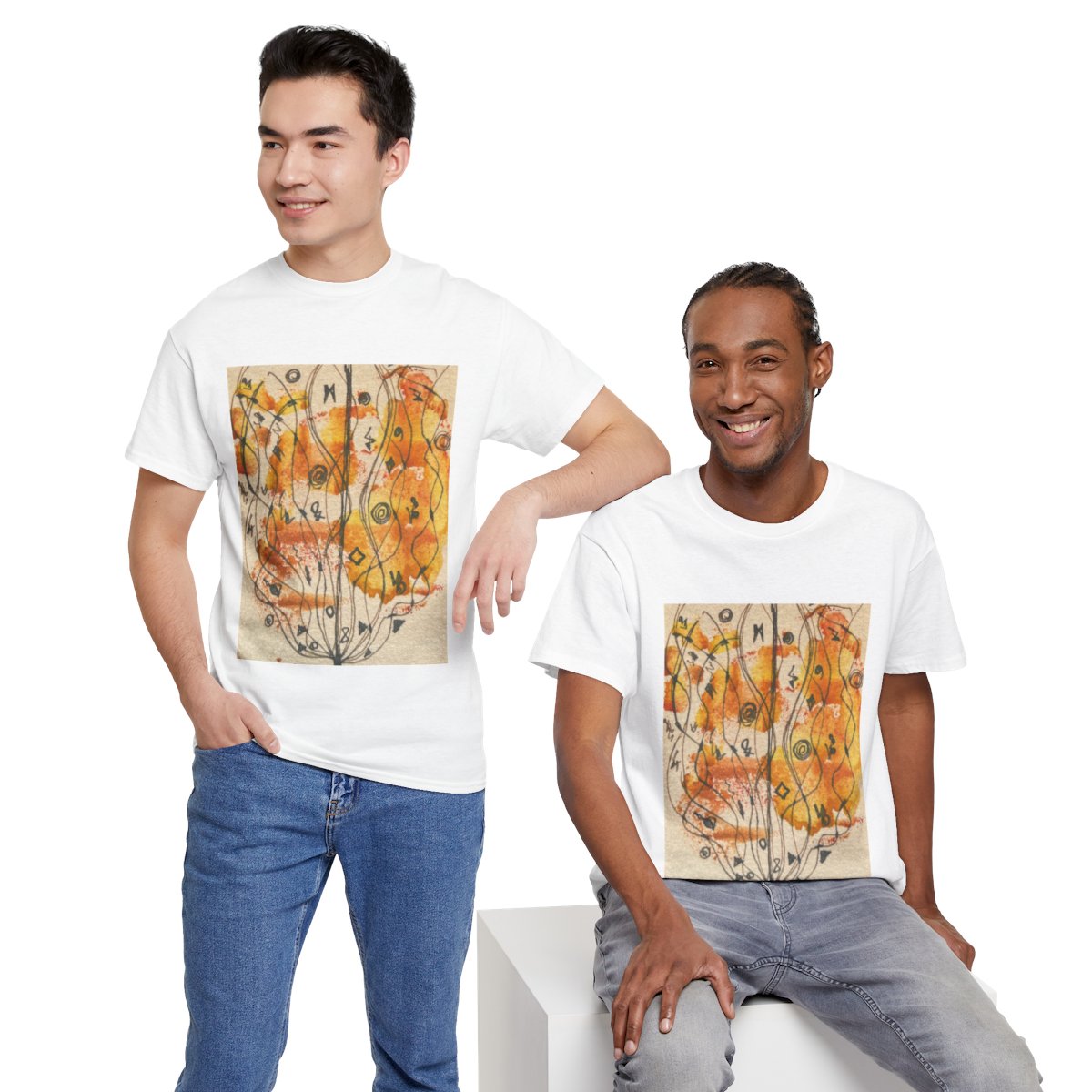 The unisex heavy cotton tee is the basic staple of any wardrobe. It is the foundation upon which casual fashion grows. All it needs is a personalized design to elevate things to profitability. The specially spun fibers provide a smooth surface for premium printing vividity and sharpness. No side seams mean there are no itchy interruptions under the arms. The shoulders have tape for improved durability. Your purchase supports the non-profit Lantz Museum. Thank you. Painting by Juanita.